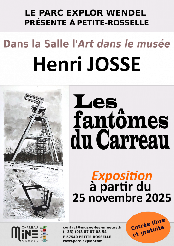 Déplacée à proximité de l’accueil du musée, l’espace est désormais en accès libre et gratuit pour découvrir « Les fantômes du Carreau ».  En mêlant l’encre de chine avec d’autres techniques, Henri Josse révèle son art et met à l’honneur les chevalements, fiers témoins de notre passé industriel.